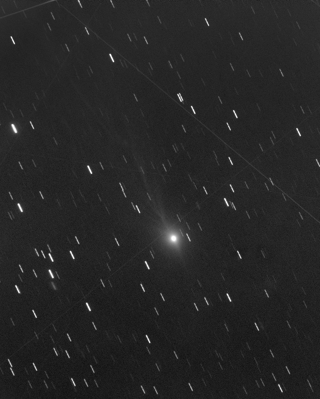 In the early morning hours of November 17, Dyer’s Dr. Billy Teets snapped a new series of images of the comet with the observatory’s remotely controlled 16″ telescope. With the comet still not far from the Sun in our sky, there was only about a half hour to image from the time it cleared the tree tops and other obstacles until the dawn sky began to compete with the faint traveler. As the comet continues to climb higher in the morning sky, more images will be acquired.